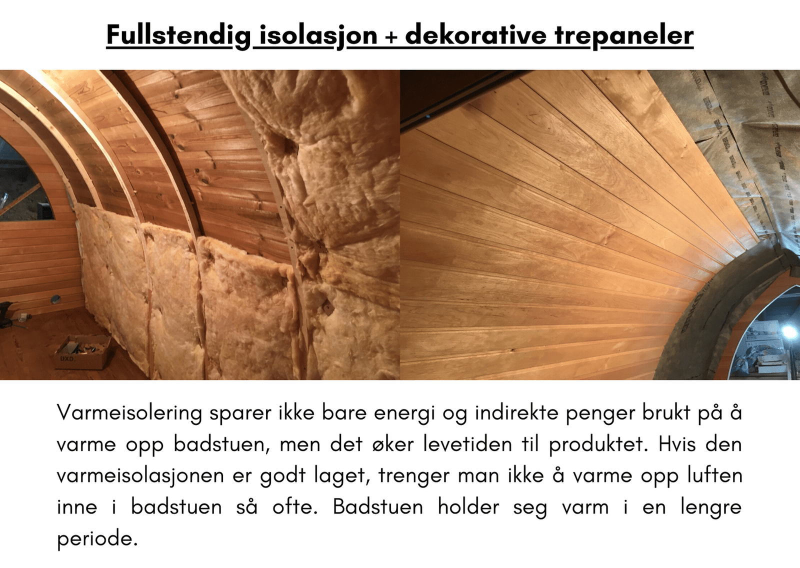 fullstendig isolasjon + dekorative trepaneler for rektangulær badstue